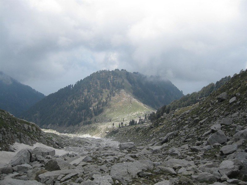 Today first acclimatize yourself for steep ascent ahead. You will trek along rocky and almost barren terrain. At the top of the hill cross the Kunal Pathri temple. Reach Laka Got nestled on a small glacier, which is the base of Indrahar Pass.